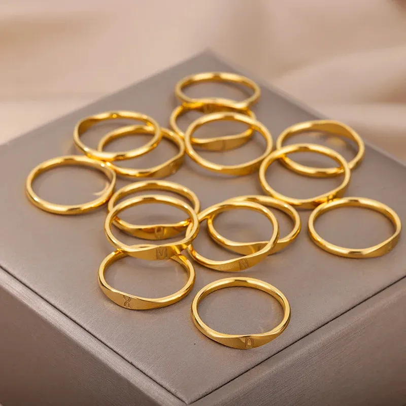 Make a statement with our Cute Tiny Letter Rings. Crafted from high-quality stainless steel and featuring trendy initial designs, these stackable finger rings are perfect for adding a personalized touch to any outfit. Their dainty and resizable design makes them comfortable to wear for any occasion, from parties to daily wear. Express your unique style with these fashionable rings. Order now and enjoy free shipping on orders over $150 USD. Own a piece of our factory's craftsmanship and elevate your jewelry collection with these cute and trendy rings.